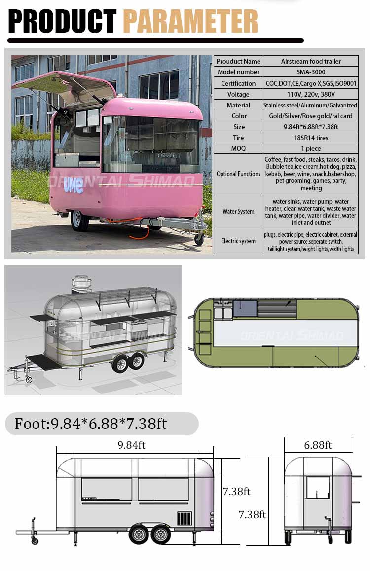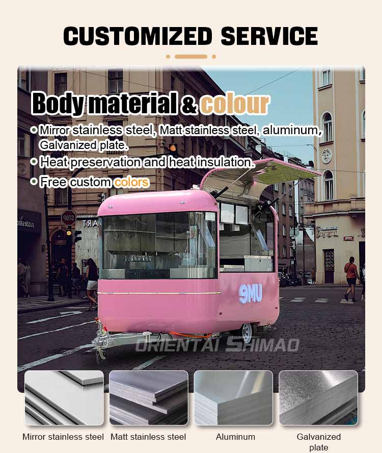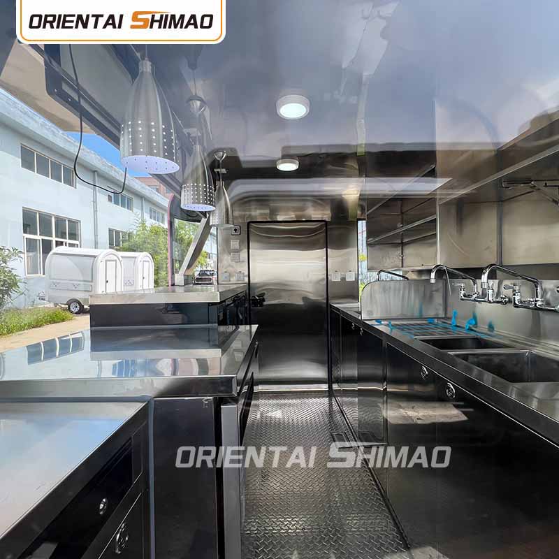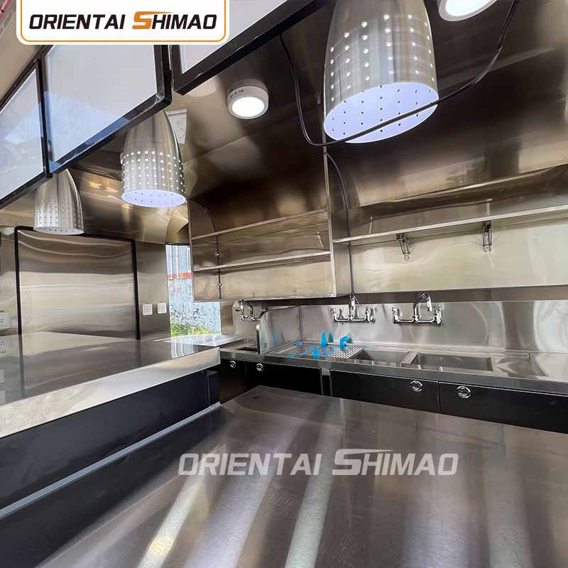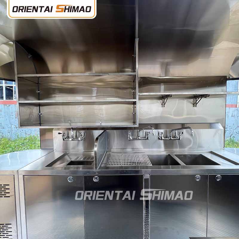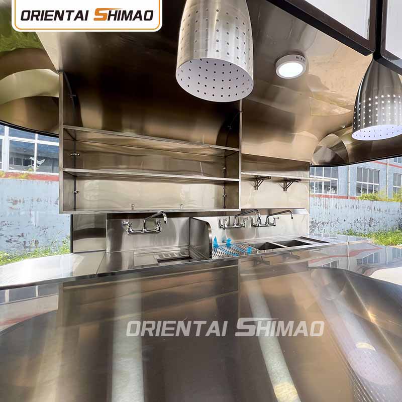 Fő anyagként a kiváló minőségű 304-es rozsdamentes acélt választottuk, amely kiváló korrózióállóságáról és kiváló tartósságáról ismert, és stabil teljesítményt tud fenntartani különféle környezeti körülmények között, biztosítva, hogy Airstream Food Trailer termékeink hosszú távon is megőrizzék kiváló minőségüket és funkcionalitásukat, és számos kihívással nézzenek szembe. A 304-es rozsdamentes acél kiváló korrózióállósága, így a teherautót nem éri könnyen oxidáció vagy rozsda, ami jelentősen meghosszabbítja az élettartamát. A 304-es rozsdamentes acél kiváló korrózióállósága miatt a teherautó kevésbé érzékeny az oxidációra vagy a rozsdára, ami jelentősen meghosszabbítja élettartamát.