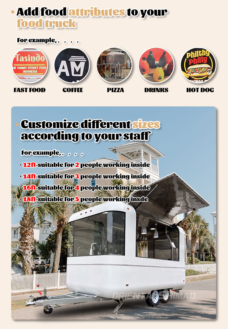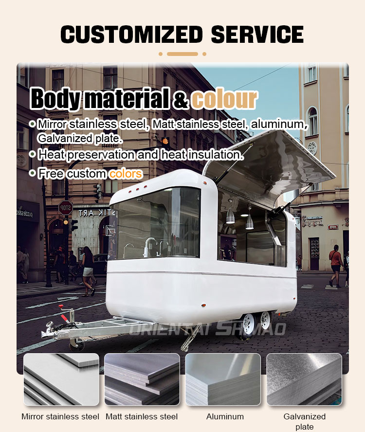 Modellezés és stílus: a food truck megjelenésének modellezése és stílusa fontos tényező a vásárlók vonzásában. Testreszabható az ügyfelek márkaképének, üzleti jellemzőinek vagy személyes preferenciáinak megfelelően, mint például a letisztult design, a retro stílus, a modern egyszerűség és így tovább.