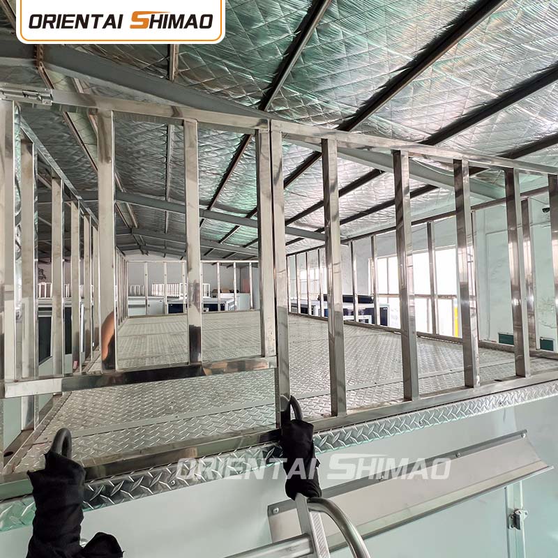 Ami a padló kialakítását illeti, még zseniálisabb, háromrétegű szerkezettel több védőhatást érhet el. Az alsó réteg üvegszállal megerősített műanyagból (FRP) készül, amely kiváló víz- és nedvességálló tulajdonságokkal rendelkezik, hatékonyan blokkolja a talajnedvesség behatolását a food truck belsejébe; a középső réteg Ausztráliából importált rovarálló fatáblákból készül, amelyek speciálisan természetes rovarálló funkcióval vannak kezelve, szilárd védelmi vonalat építve az élelmiszerbiztonság érdekében; a felső réteg pedig strapabíró alumínium táblákkal van burkolva, ami nemcsak csúszás- és kopásálló, hanem az általános esztétikát és a tartósságot is javítja, biztosítva, hogy az étkezők a lehető legjobban élvezhessék ételeiket. A felső réteget erős és tartós alumíniumlemez borítja, amely nemcsak csúszás- és kopásálló, hanem javítja az általános esztétikát és a tartósságot is, biztosítva az étkezők biztonságát és kényelmét az étel elfogyasztása közben.