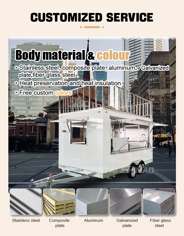 Amikor az Oriental Shimao Dessert Food Truck kiváló minőségéről beszélünk, fontos megemlíteni a gondosan kiválasztott és zseniális anyagkombinációt, amely nemcsak egyedülálló tartósságát adja a kocsinak, hanem nagymértékben javítja praktikusságát és higiéniai színvonalát is, biztosítva, hogy minden vásárló biztonságos és kényelmes étkezési élményben legyen része.
