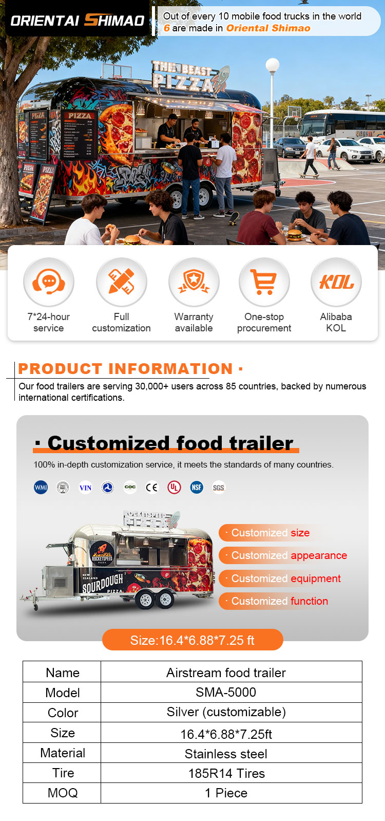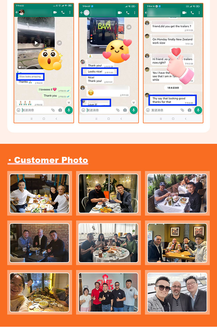 Fő anyagként a kiváló minőségű 304-es rozsdamentes acélt választottuk, amely kiváló korrózióállóságáról és kiváló tartósságáról ismert, és stabil teljesítményt képes fenntartani különféle környezeti körülmények között, biztosítva, hogy felszerelt Food Truck termékeink hosszú távon is megőrizzék kiváló minőségüket és funkcionalitásukat, és sokféle kihívással nézzenek szembe. A 304-es rozsdamentes acél kiváló korrózióállósága, így a teherautót nem éri könnyen oxidáció vagy rozsda, ami jelentősen meghosszabbítja az élettartamát. A 304-es rozsdamentes acél kiváló korrózióállósága miatt a teherautó kevésbé érzékeny az oxidációra vagy a rozsdára, ami jelentősen meghosszabbítja élettartamát.