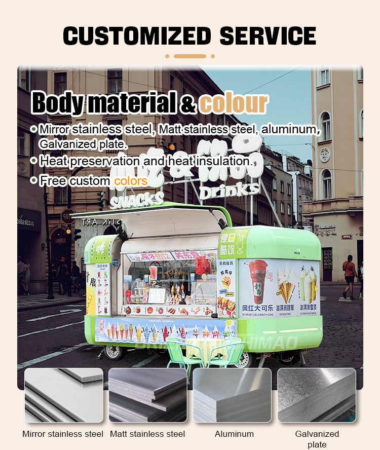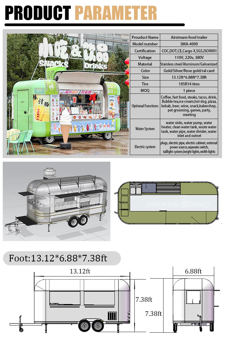 Fő anyagként a kiváló minőségű 304-es rozsdamentes acélt választottuk, amely kiváló korrózióállóságáról és kiváló tartósságáról ismert, és stabil teljesítményt tud fenntartani különféle környezeti körülmények között, biztosítva, hogy Food Trailer With Full Kitchen termékeink hosszú távon is megőrizzék kiváló minőségüket és funkcionalitásukat, és számos kihívással nézzenek szembe. A 304-es rozsdamentes acél kiváló korrózióállósága, így a teherautót nem éri könnyen oxidáció vagy rozsda, ami jelentősen meghosszabbítja az élettartamát. A 304-es rozsdamentes acél kiváló korrózióállósága miatt a teherautó kevésbé érzékeny az oxidációra vagy a rozsdára, ami jelentősen meghosszabbítja élettartamát.