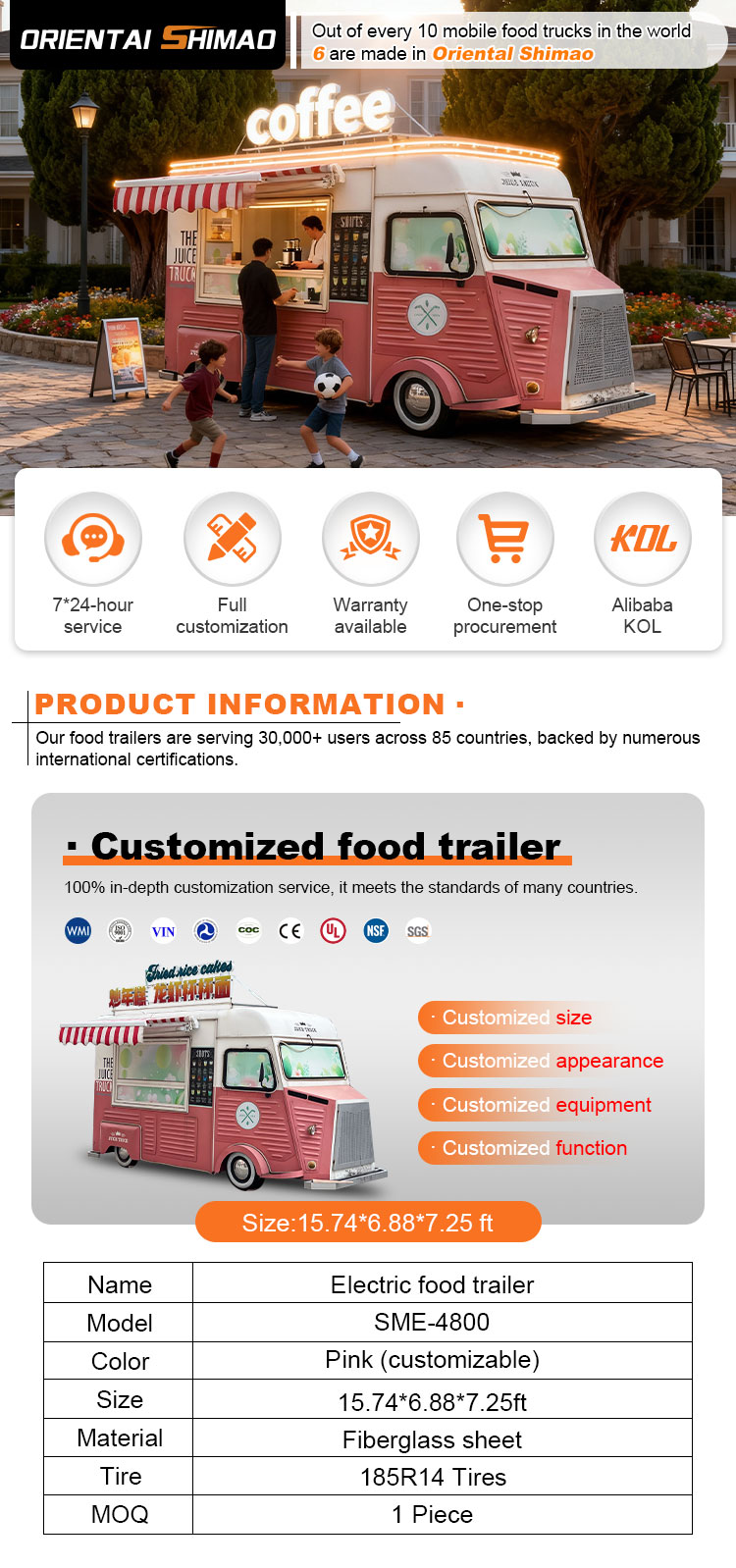 Kínálunk pótkocsi élelmiszer-teherautó tanúsítványokat: DOT, CE, SGS, SCI, ISO, COC,