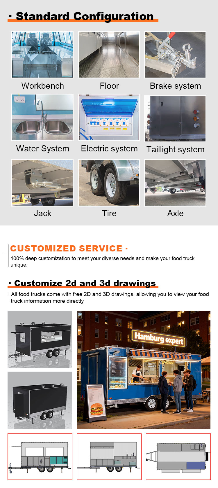 Anyag és folyamat: Válasszon kiváló minőségű anyagokat és fejlett gyártási eljárást, hogy a food truck megjelenése gyönyörű és tartós legyen.