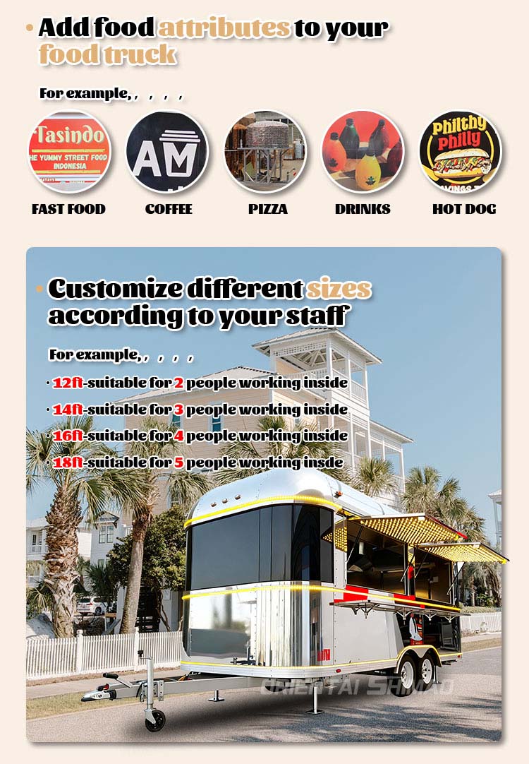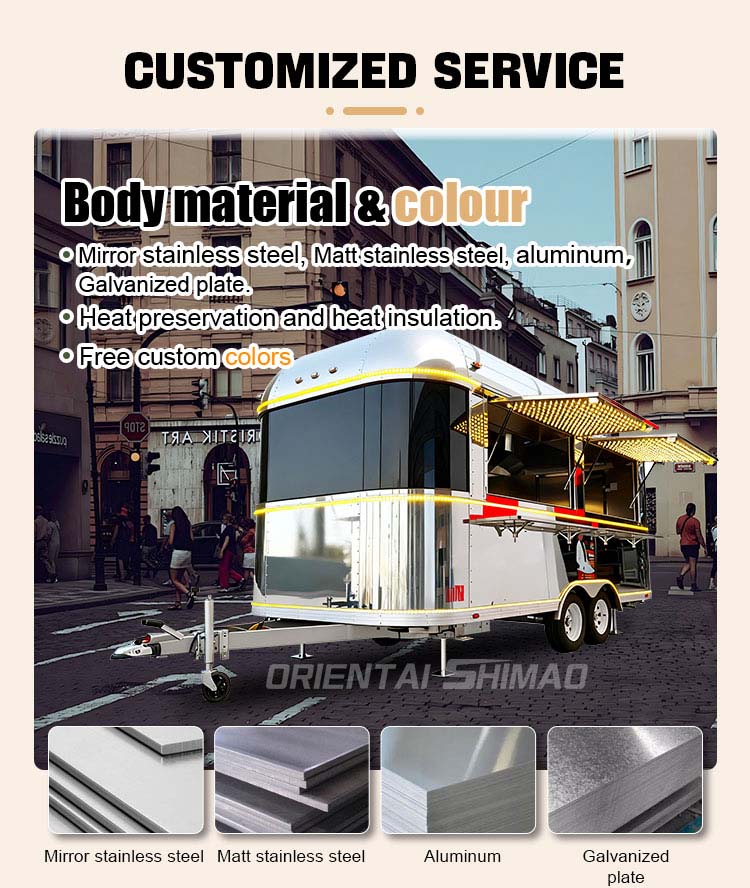 Modellezés és stílus: a food truck megjelenésének modellezése és stílusa fontos tényező a vásárlók vonzásában. Testreszabható az ügyfelek márkaképének, üzleti jellemzőinek vagy személyes preferenciáinak megfelelően, mint például a letisztult design, a retro stílus, a modern egyszerűség és így tovább.