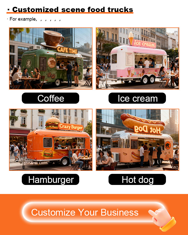 Élelmiszer-utánfutó Vezethető élelmiszer-teherautó Mobil konyhai étkeztetés Street Food Trailer Concept Food Truck