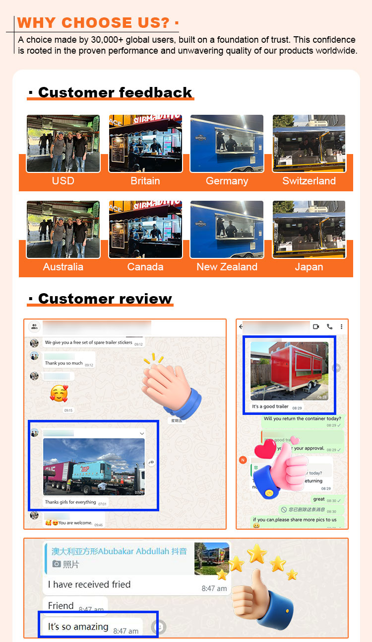 Mobil Catering Trailer Street Food Hot Dog Cart Teljesen felszerelt élelmiszer-utánfutó Food Truck