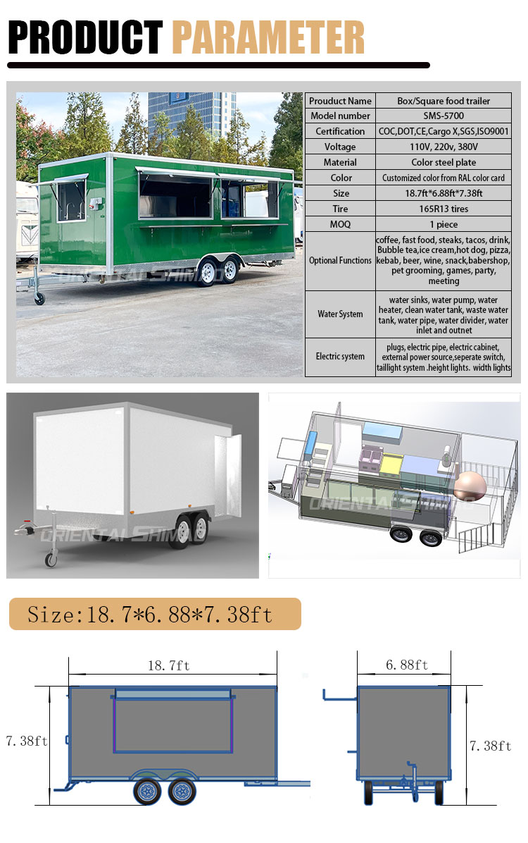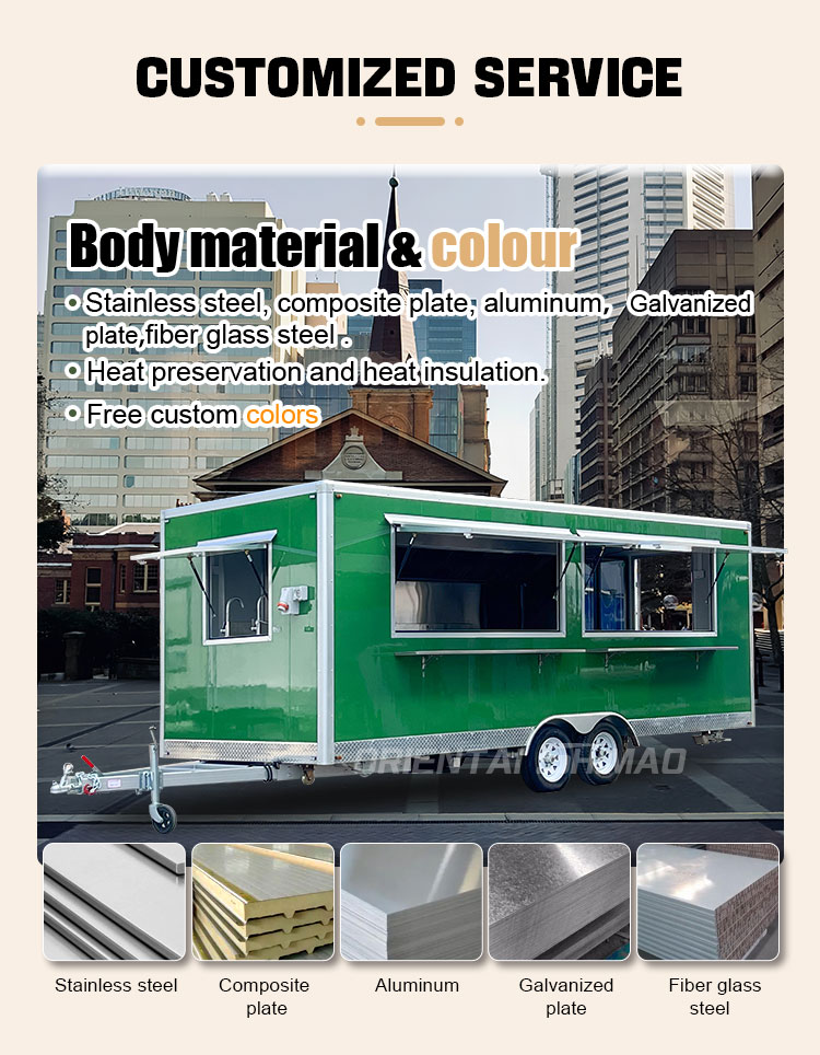 Anyag és folyamat: Válasszon kiváló minőségű anyagokat és fejlett gyártási eljárást, hogy a food truck megjelenése gyönyörű és tartós legyen.