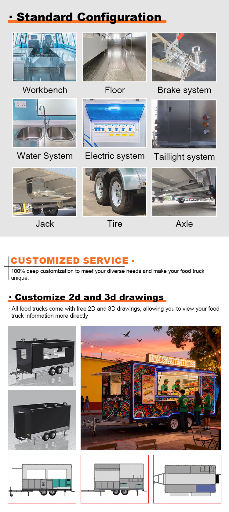 Élelmiszer-utánfutó Vezethető élelmiszer-teherautó Mobil konyhai étkeztetés Street Food Trailer Concept Food Truck