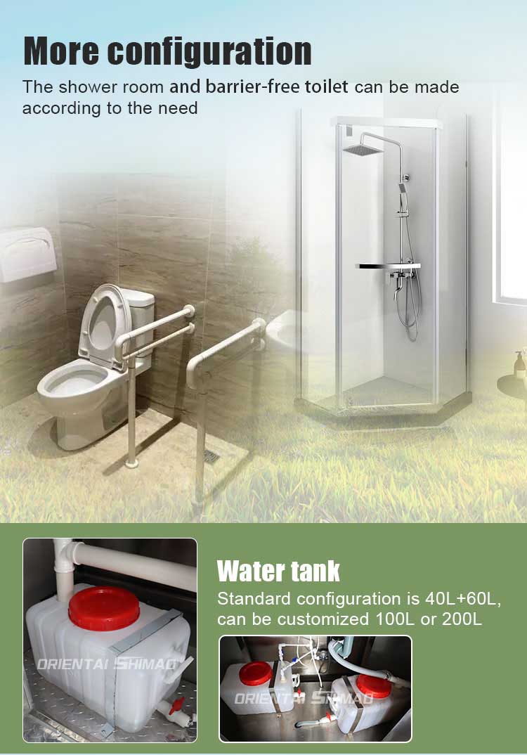 · Környezetbarát és energiahatékony: a víztakarékos öblítési technológiát és az alacsony energiájú világítási rendszert alkalmazza az erőforrás-fogyasztás jelentős csökkentése érdekében. A szennyvízkezelő rendszer hatékonyan működik a környezet szennyezésének csökkentése érdekében, miközben biztosítja a higiéniát és a biztonságot a használat során.
