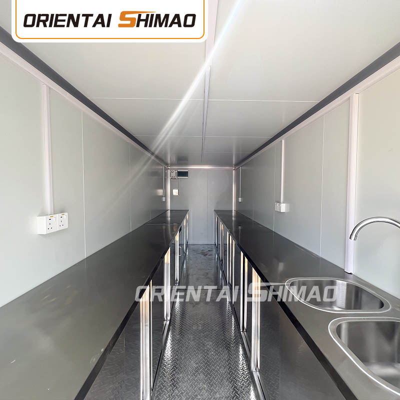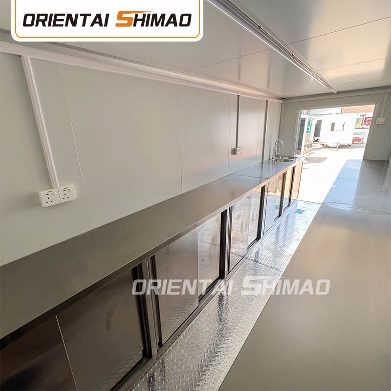 A belső szerkezet kialakításánál is rendkívüli kivitelezést mutatunk be. Az egyedi csuklós eljárás zökkenőmentes összeköttetést biztosít a fal és a munkapad között, ez a kialakítás nemcsak az általános esztétikát javítja, hanem nagymértékben leegyszerűsíti a tisztítási munkát is, ragasztók, például ragasztó használata nélkül, elkerülve az olyan problémákat, mint a nyitott ragasztó, elszíneződés, ugyanakkor csökkenti a szennyeződés lehetőségét, tisztább munkakörnyezetet teremtve a kezelő számára. A részletekre való odafigyelés és az ellenőrzés a kulcsa annak, hogy az Oriental Shimao Organic Salad Food Truck ki tudjon állni a versenypiacon.