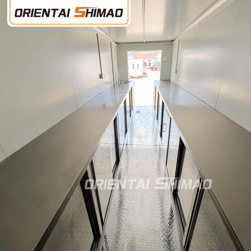 Ami a padló kialakítását illeti, még zseniálisabb, háromrétegű szerkezettel több védőhatást érhet el. Az alsó réteg üvegszállal megerősített műanyagból (FRP) készül, amely kiváló víz- és nedvességálló tulajdonságokkal rendelkezik, hatékonyan blokkolja a talajnedvesség behatolását a food truck belsejébe; a középső réteg Ausztráliából importált rovarálló fatáblákból készül, amelyek speciálisan természetes rovarálló funkcióval vannak kezelve, szilárd védelmi vonalat építve az élelmiszerbiztonság érdekében; a felső réteg pedig strapabíró alumínium táblákkal van burkolva, ami nemcsak csúszás- és kopásálló, hanem az általános esztétikát és a tartósságot is javítja, biztosítva, hogy az étkezők a lehető legjobban élvezhessék ételeiket. A felső réteget erős és tartós alumíniumlemez borítja, amely nemcsak csúszás- és kopásálló, hanem javítja az általános esztétikát és a tartósságot is, biztosítva az étkezők biztonságát és kényelmét az étel elfogyasztása közben.