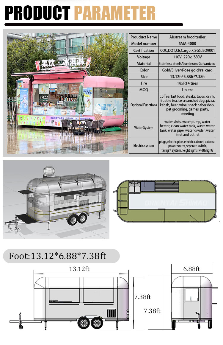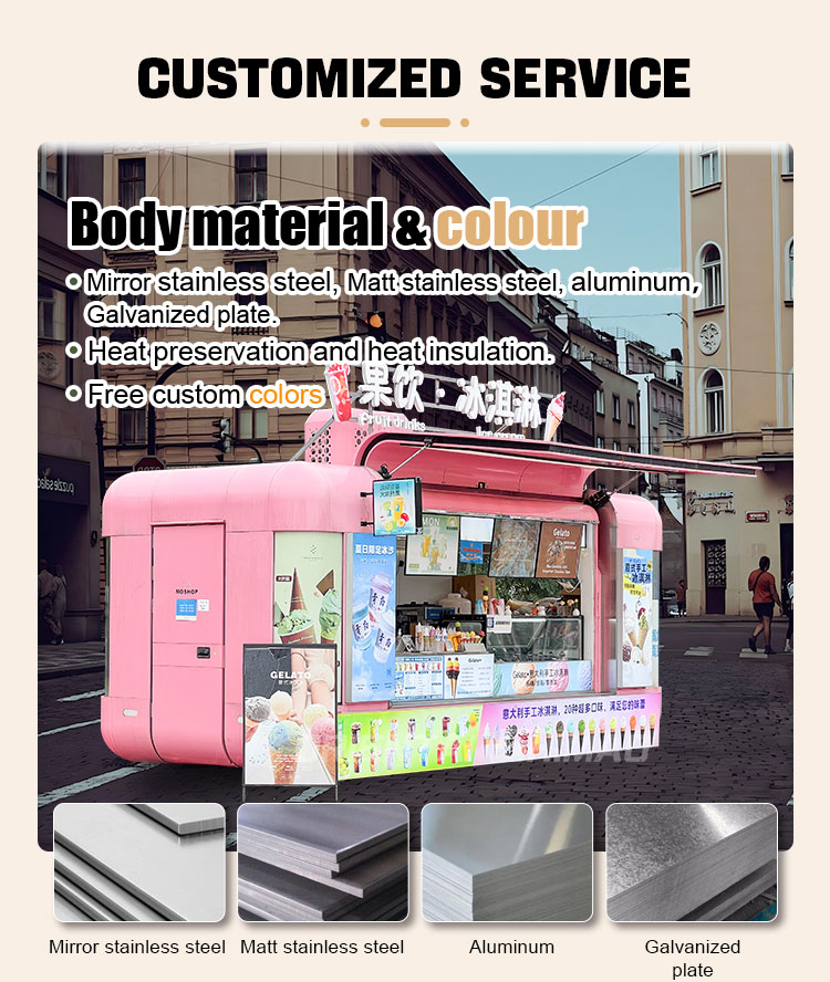 Fő anyagként a kiváló minőségű 304-es rozsdamentes acélt választottuk, amely kiváló korrózióállóságáról és kiváló tartósságáról ismert, és stabil teljesítményt tud fenntartani különféle környezeti körülmények között, biztosítva, hogy Pizza Trailer termékeink hosszú távon is megőrizzék kiváló minőségüket és funkcionalitásukat, és sokféle kihívással nézzenek szembe. A 304-es rozsdamentes acél kiváló korrózióállósága, így a teherautót nem éri könnyen oxidáció vagy rozsda, ami jelentősen meghosszabbítja az élettartamát. A 304-es rozsdamentes acél kiváló korrózióállósága miatt a teherautó kevésbé érzékeny az oxidációra vagy a rozsdára, ami jelentősen meghosszabbítja élettartamát.