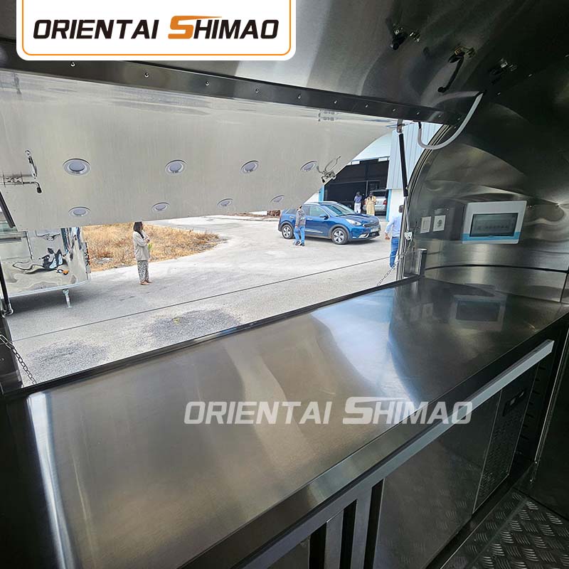 A kis élelmiszer -pótkocsi teherautó rozsdamentes acélt fogad el, mivel a belső és külső anyag, ami jelentősen javítja az élelmiszer -pótkocsi tartósságát, a rozsdamentes acél kiváló korrózióálló és oxidációs ellenállást mutat, ami hosszú ideig megőrizheti a megjelenést és a teljesítményt. És a rozsdamentes acél könnyen tisztítható, baktériumok elleni küzdelem, az élelmiszer-biztonság és a higiéniai előírásokkal összhangban az élelmiszer-előállítás és értékesítés higiéniájának és biztonságának védelme érdekében. A megjelenés szempontjából a rozsdamentes acél sima, erős és modern megjelenésű, ami javíthatja a pótkocsi esztétikájának megjelenését és növelheti a márka imázsát.