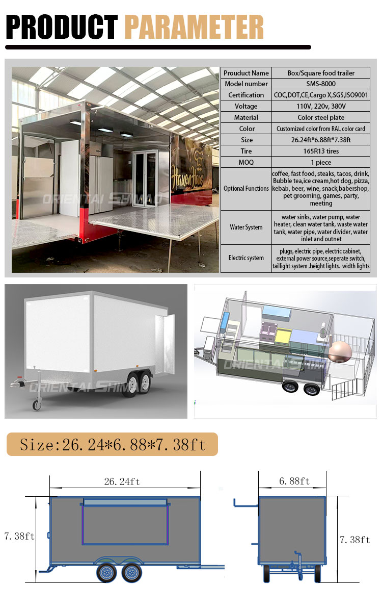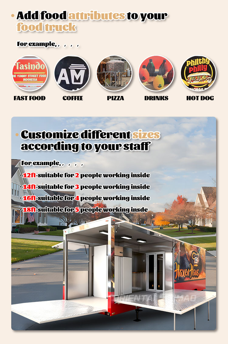 Modellezés és stílus: a food truck megjelenésének modellezése és stílusa fontos tényező a vásárlók vonzásában. Testreszabható az ügyfelek márkaképének, üzleti jellemzőinek vagy személyes preferenciáinak megfelelően, mint például a letisztult design, a retro stílus, a modern egyszerűség és így tovább.