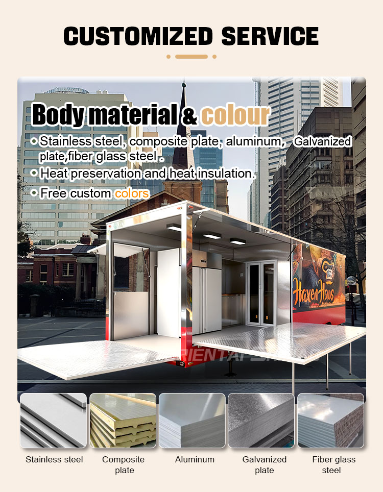 Kiegészítő funkciók: adjon hozzá további kiegészítő funkciókat az ügyfelek igényei szerint, mint például hűtés és frissesség megőrzése, fűtés és hőmegőrzés, vízálló és elektromosság elleni védelem, stb., hogy növelje a food truck praktikumát és biztonságát.