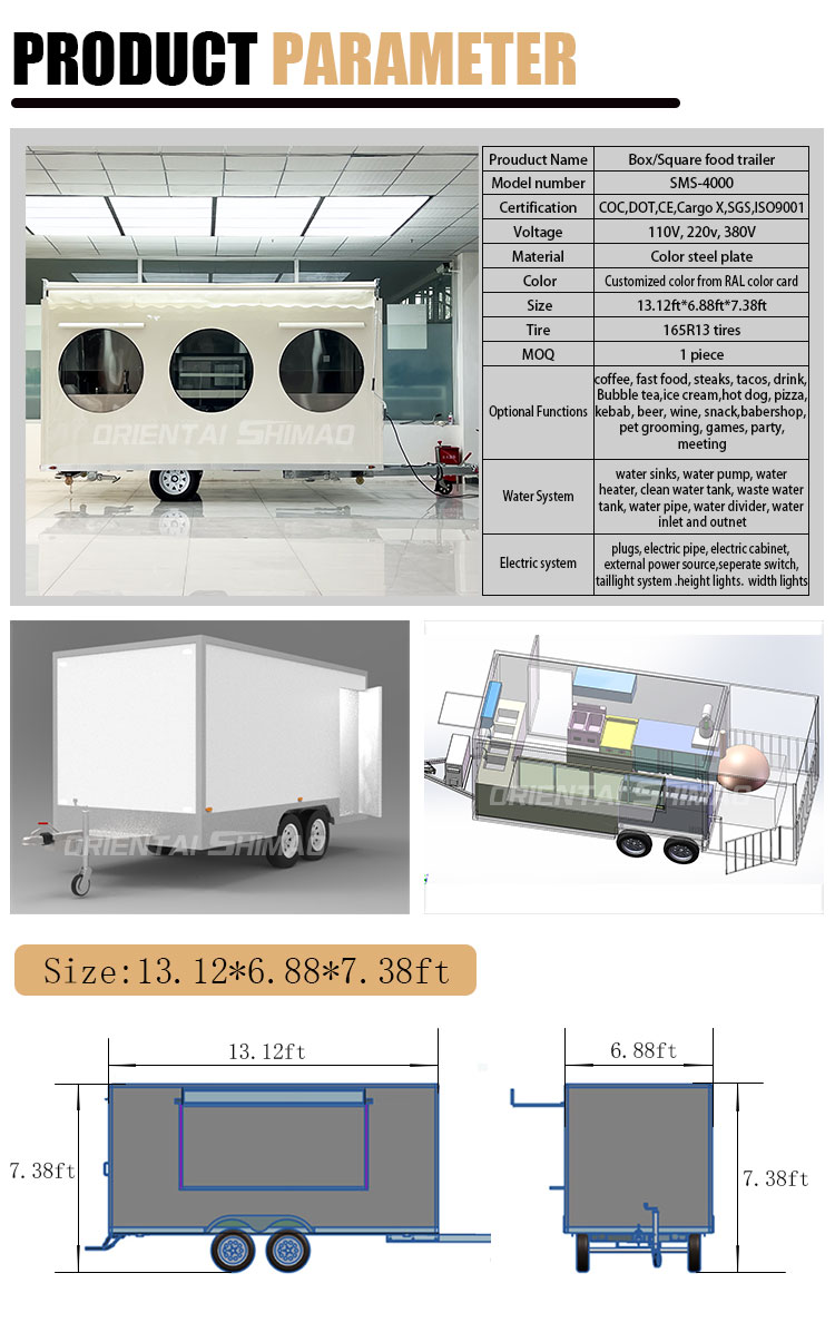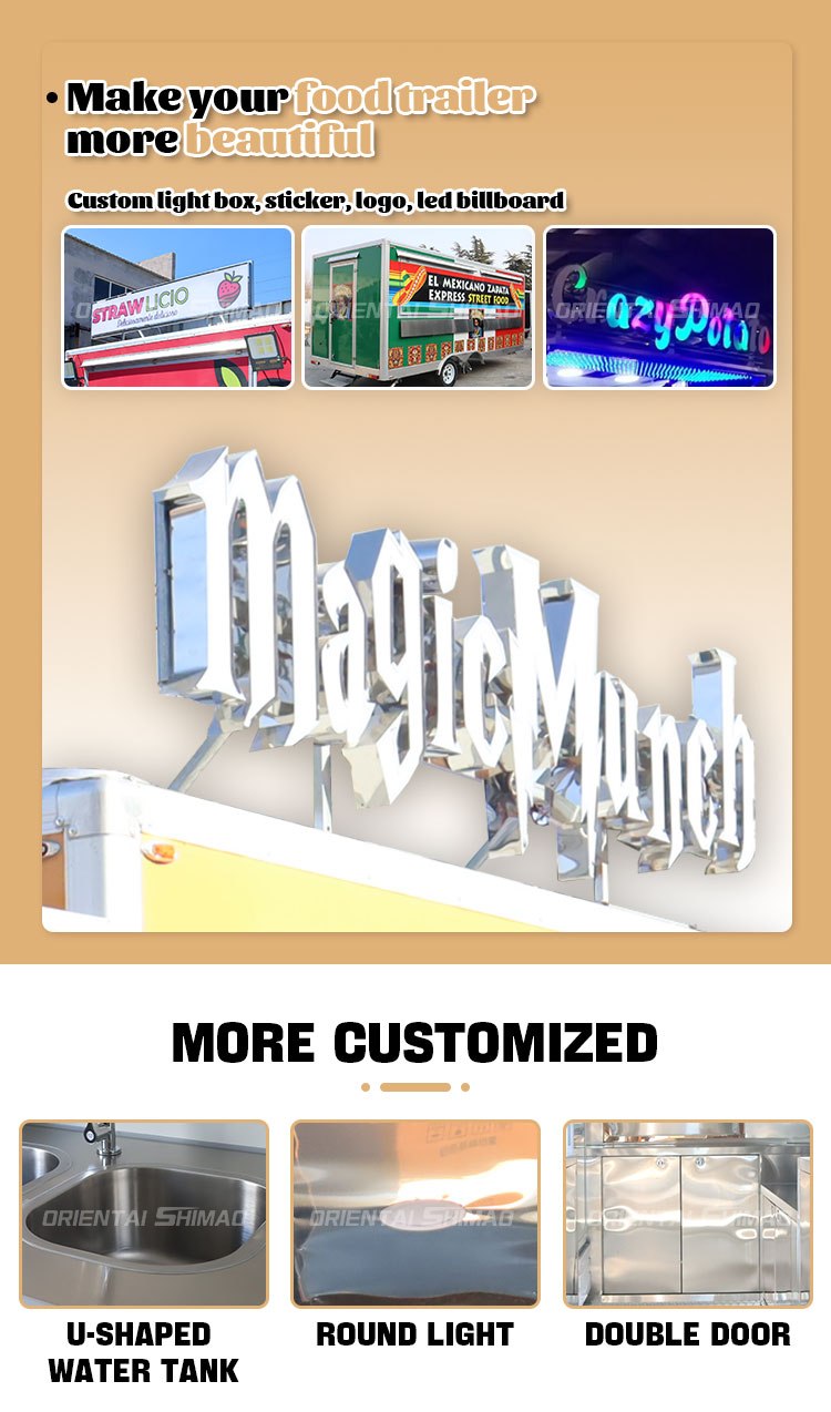 Modellezés és stílus: a food truck megjelenésének modellezése és stílusa fontos tényező a vásárlók vonzásában. Testreszabható az ügyfelek márkaképének, üzleti jellemzőinek vagy személyes preferenciáinak megfelelően, mint például a letisztult design, a retro stílus, a modern egyszerűség és így tovább.